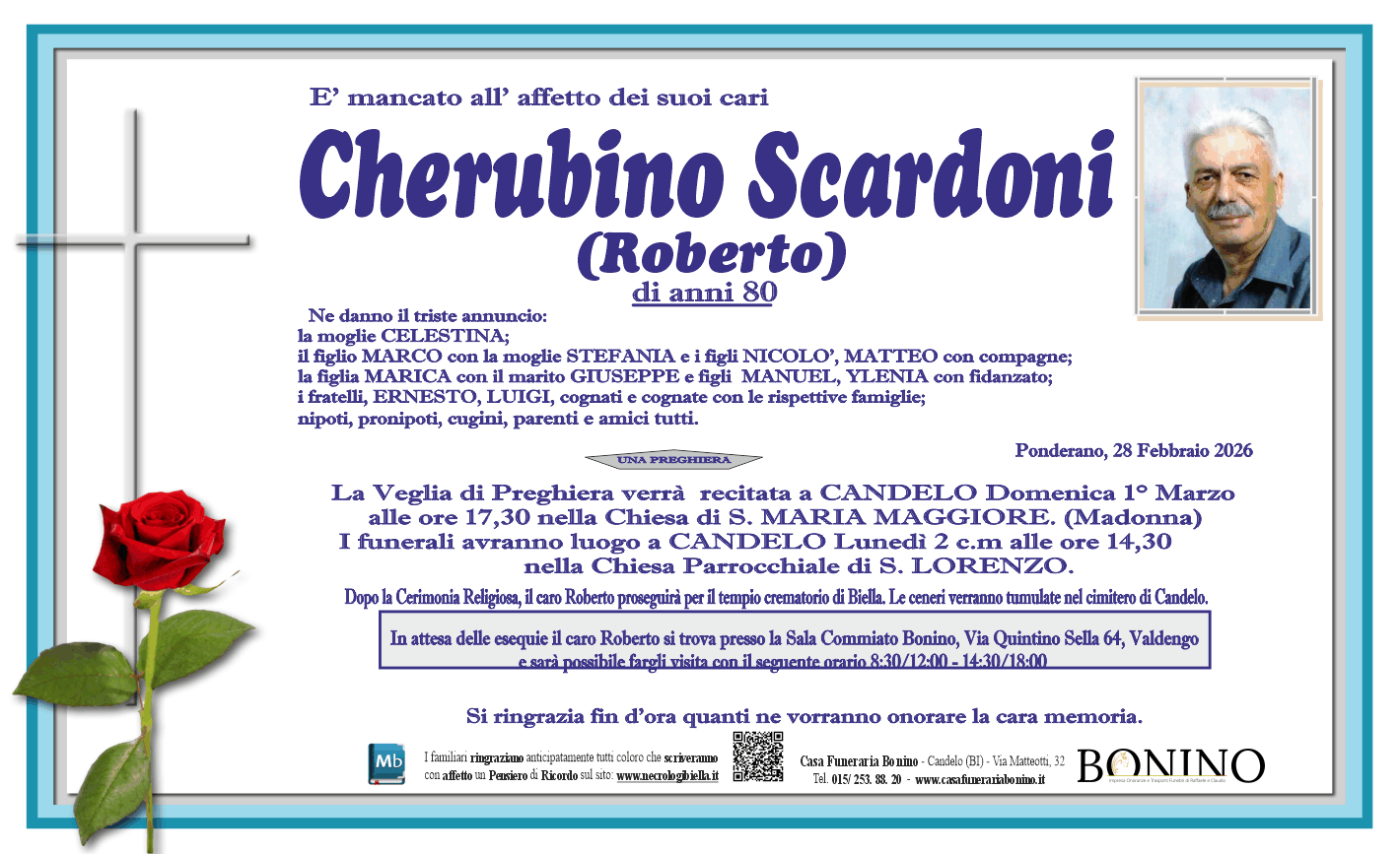 I familiari ringraziano anticipatamente tutti coloro che parteciperanno alla cerimonia funebre e tutti coloro che scriveranno con affetto un Pensiero di Ricordo.