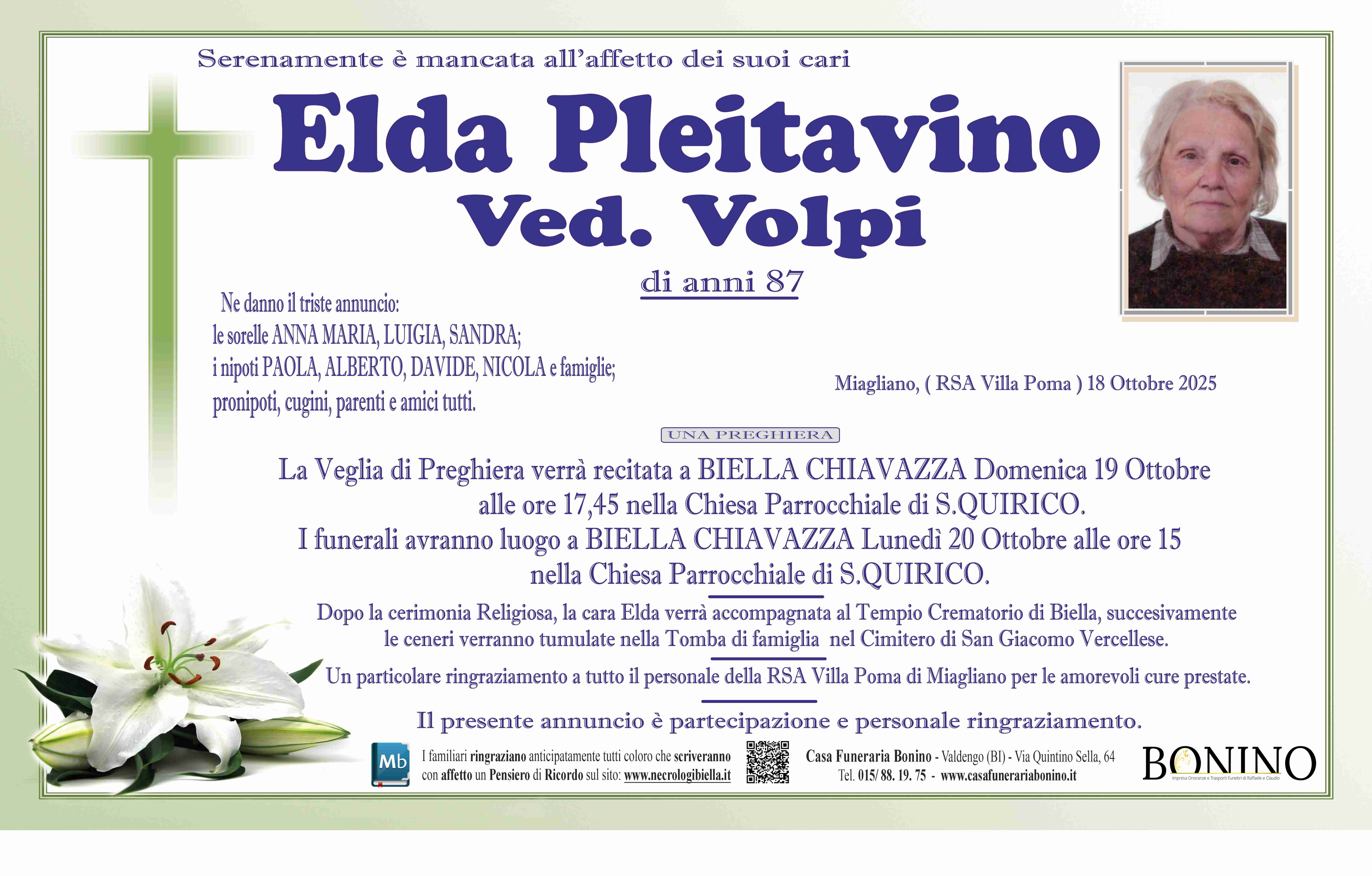 I familiari ringraziano anticipatamente tutti coloro che parteciperanno alla cerimonia funebre