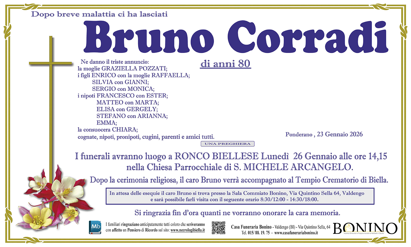 I familiari ringraziano anticipatamente tutti coloro che parteciperanno alla cerimonia funebre