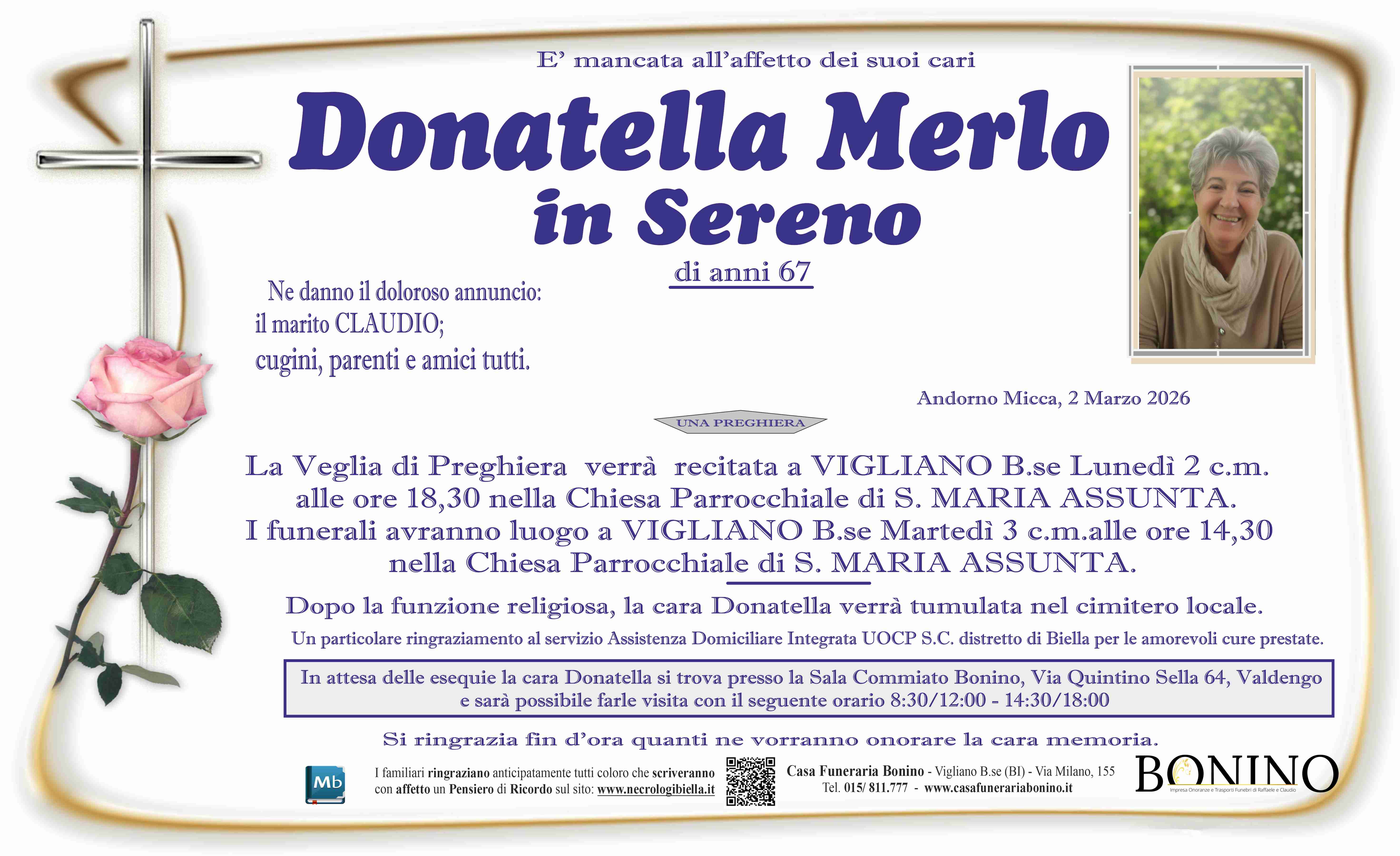 Ciao Donatella,sei sempre nei miei pensieri e nel mio cuore e non ti dimenticherò mai , un' abbraccio forte e sincere condoglianze a Claudio da Cagna Lorella e Giulio